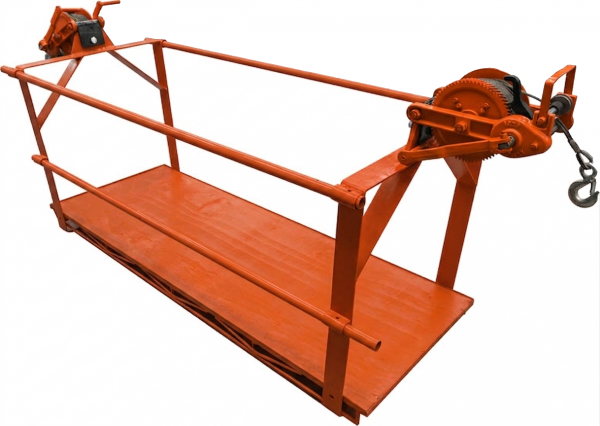 La hamaca colgante es una plataforma metálica suspendida diseñada para elevar de forma segura a uno o más trabajadores durante la realización de actividades en altura. Su estructura robusta incorpora barandales de protección y un sistema de izaje con gancho y malacate, lo que permite su acoplamiento a grúas u otros equipos de elevación para facilitar el acceso a zonas elevadas o de difícil alcance.
